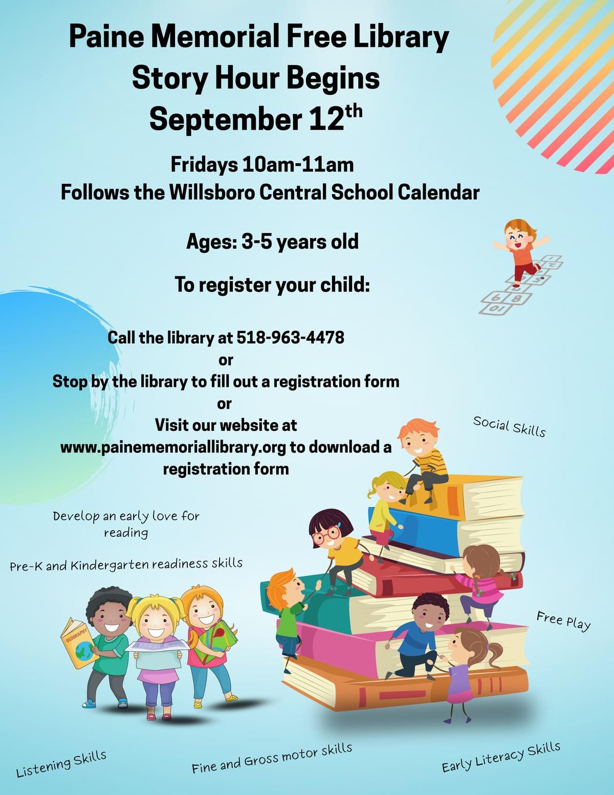 Join us at the Paine Memorial Library for our FALL STORY HOUR. Every Friday at 10am for ages 3-5.